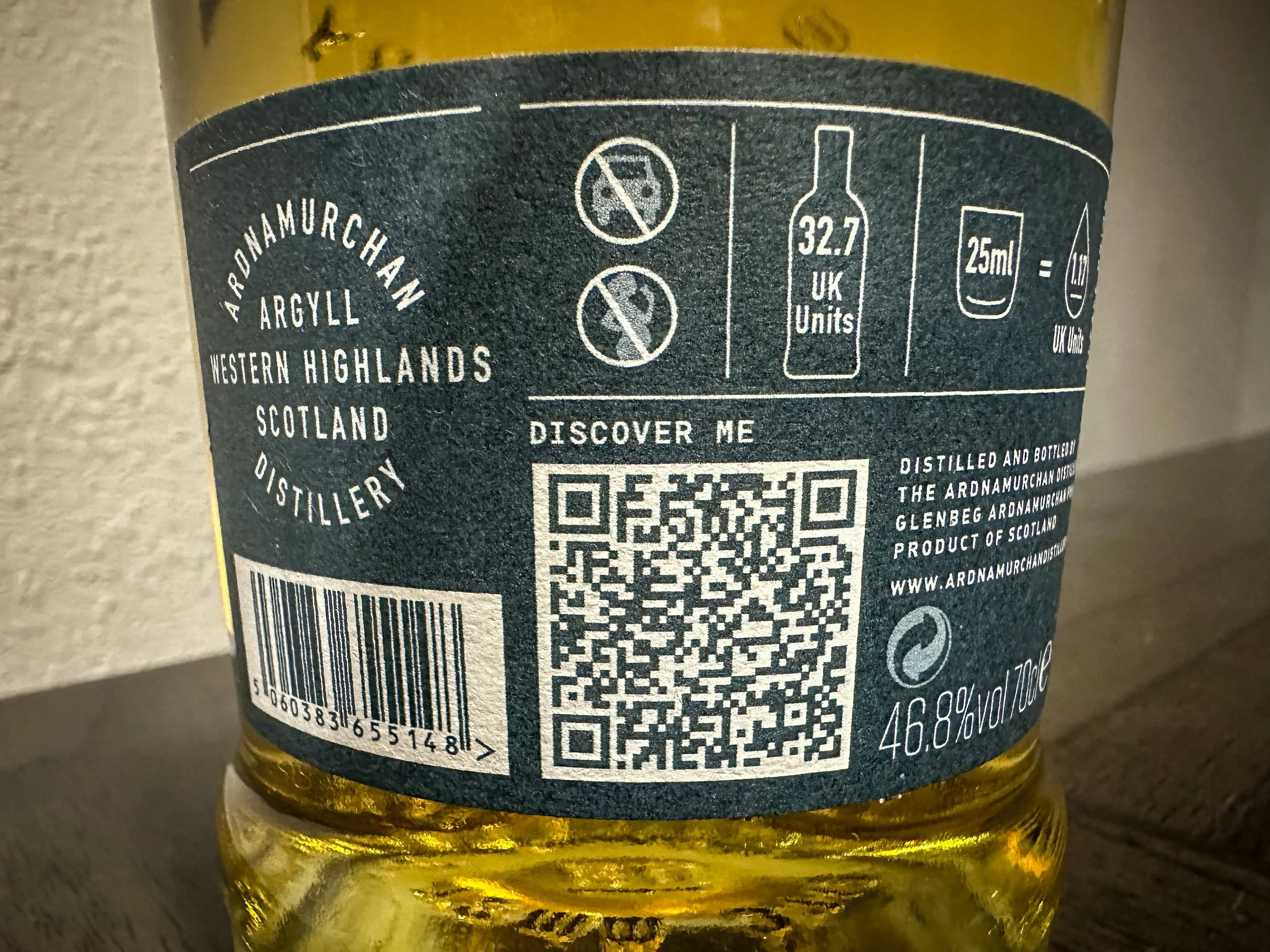 This AD/10 is a blend of 48% peated and 52% unpeated spirit and like every bottle of Ardnamurchan there’s a nifty QR code with valuable information about each bottle. Mine was bottle 374/16,380.