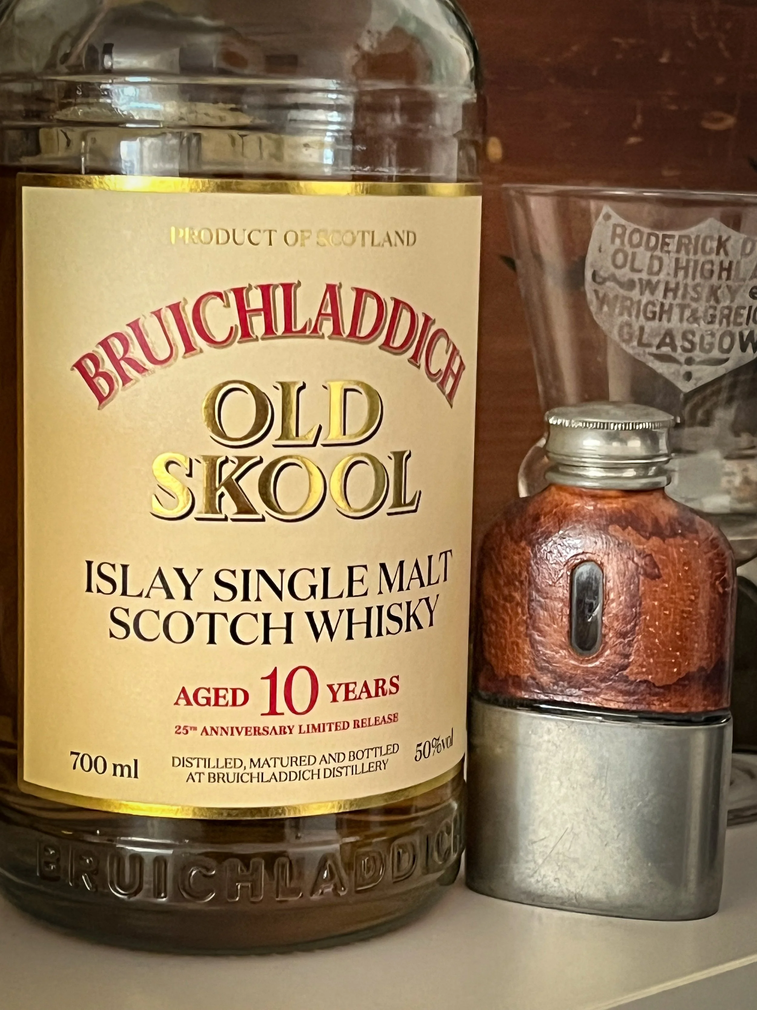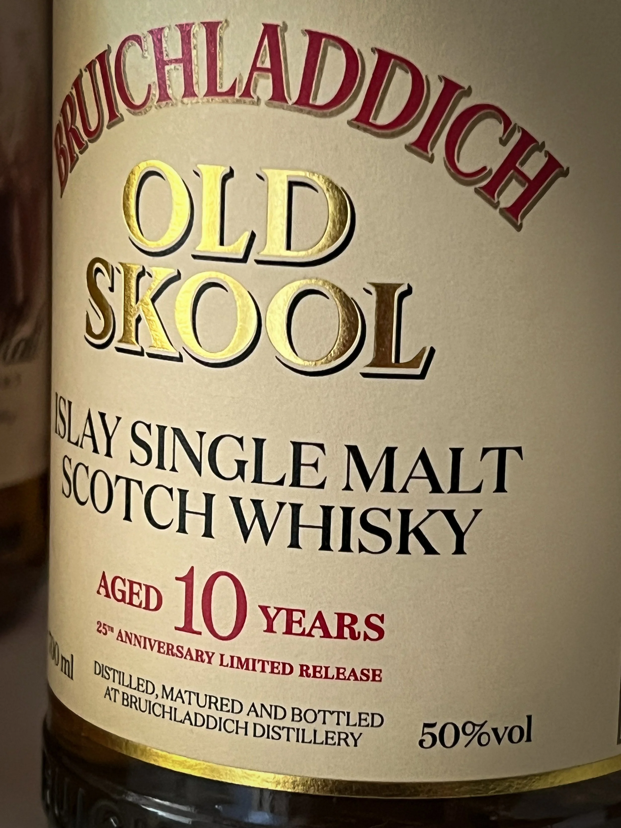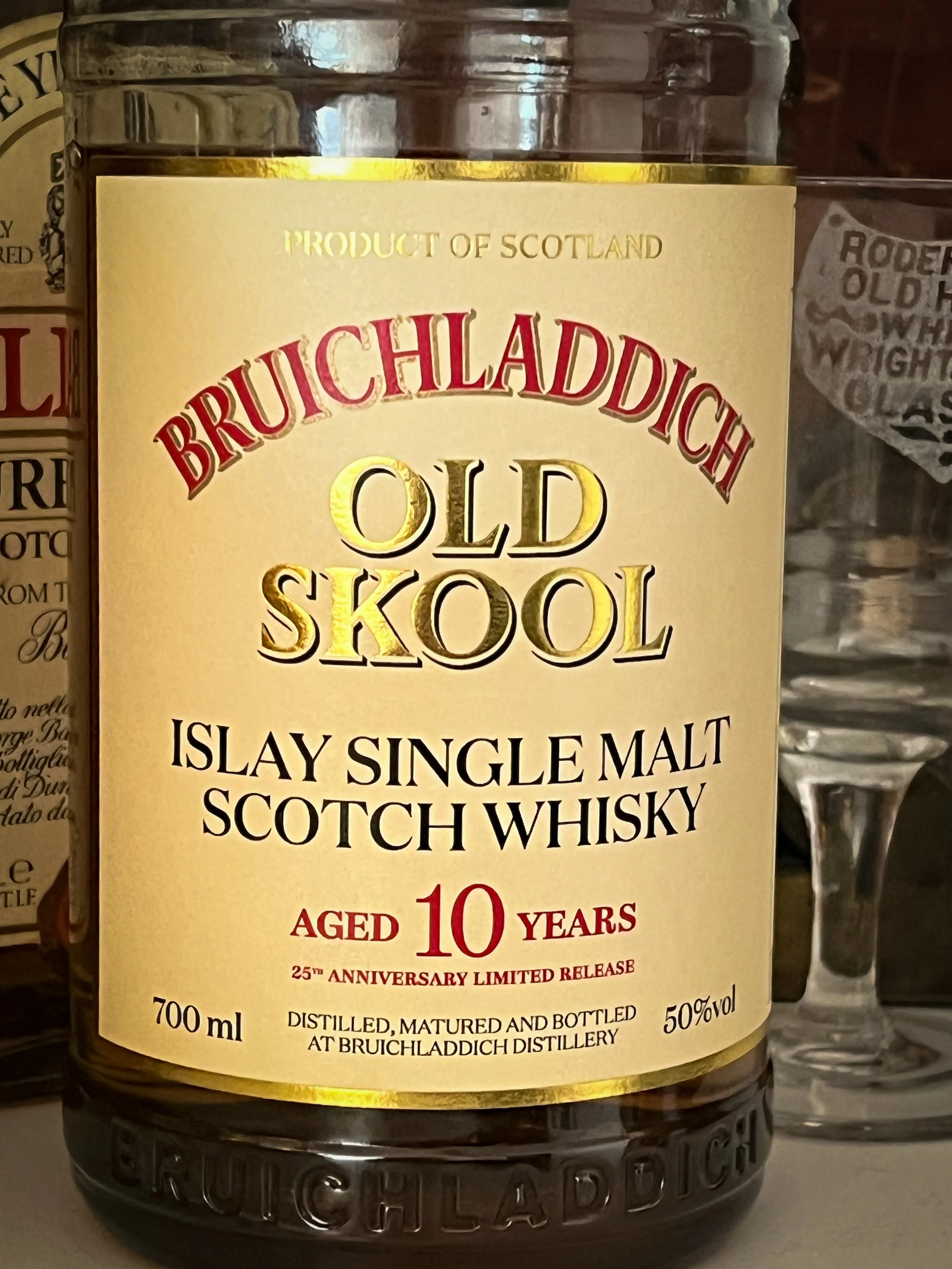 Bruichladdich Old Skool 10yo, Official bottling, 25th Anniversary Limited Edition, 95% first-fill ex-bourbon and 5% first-fill ex-Sauternes casks, 50% ABV