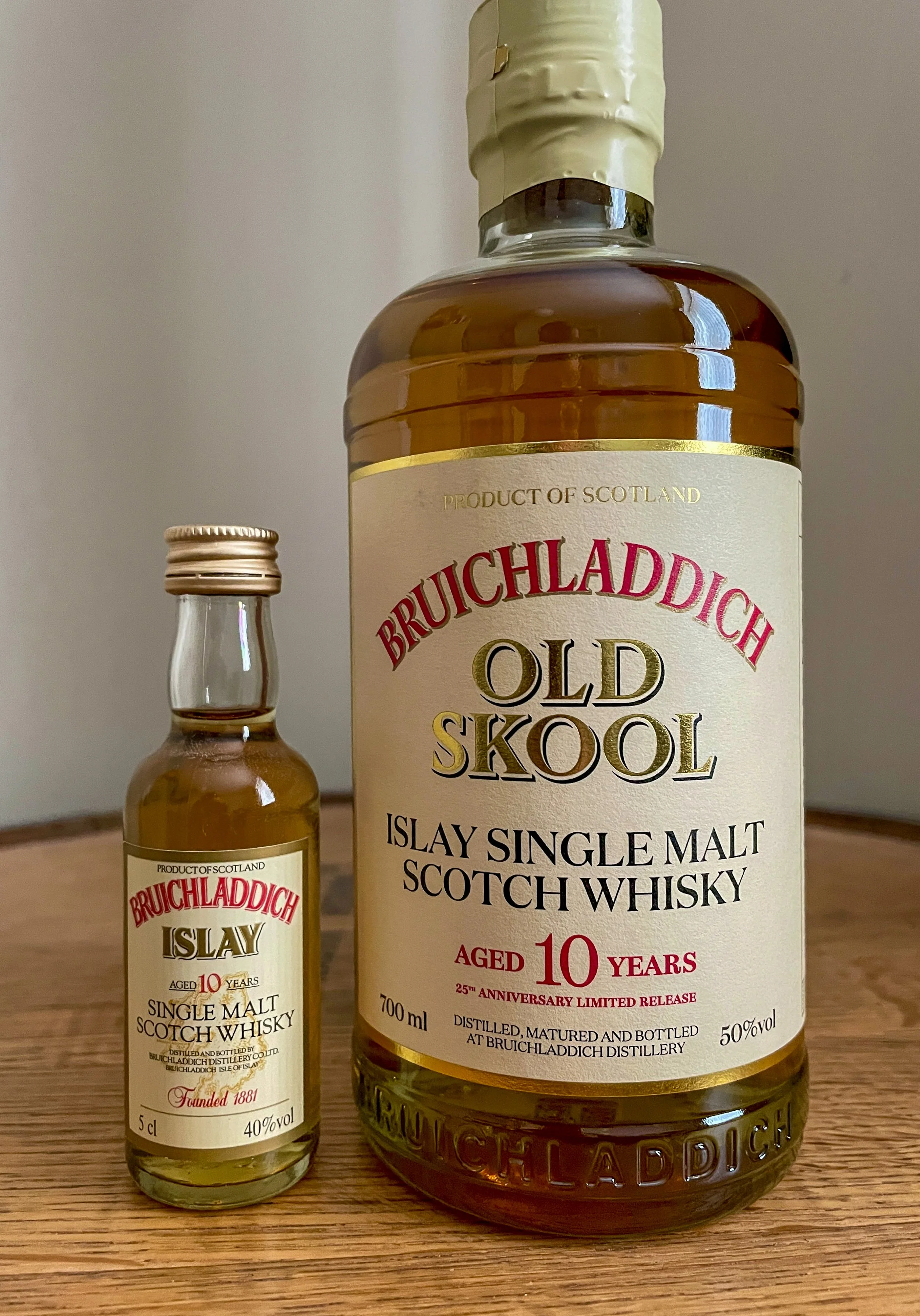 I had a dig into my collection of miniature bottles I’ve picked up at auction through the years and noticed I did have a 5cl bottle of the old Bruichladdich 10, which this bottling takes inspiration from. It seemed to be the perfect time to open and compare the two. Although the older bottle, which I think is from the 1980’s, is only bottled at 40%.