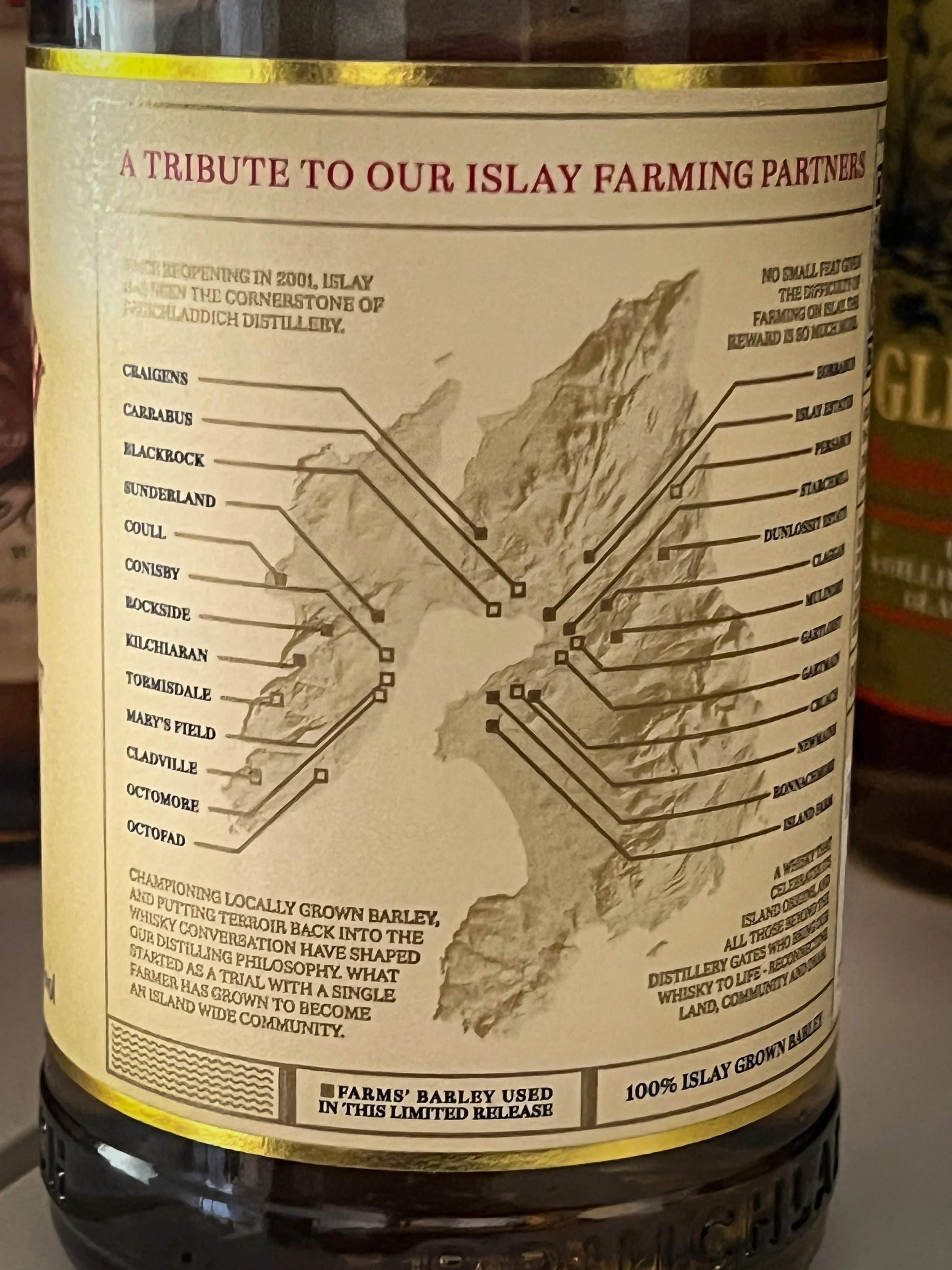 The label also celebrates the rebirth of barley growing on Islay – which Bruichladdich was instrumental in making happen. Twenty-six farms are mapped on the back of the label, all of which have at some point supplied the distillery with the barley that has gone into making the whisky over the years. Fourteen of them produced the barley that went into the Old Skool 10. It’s a nice touch.