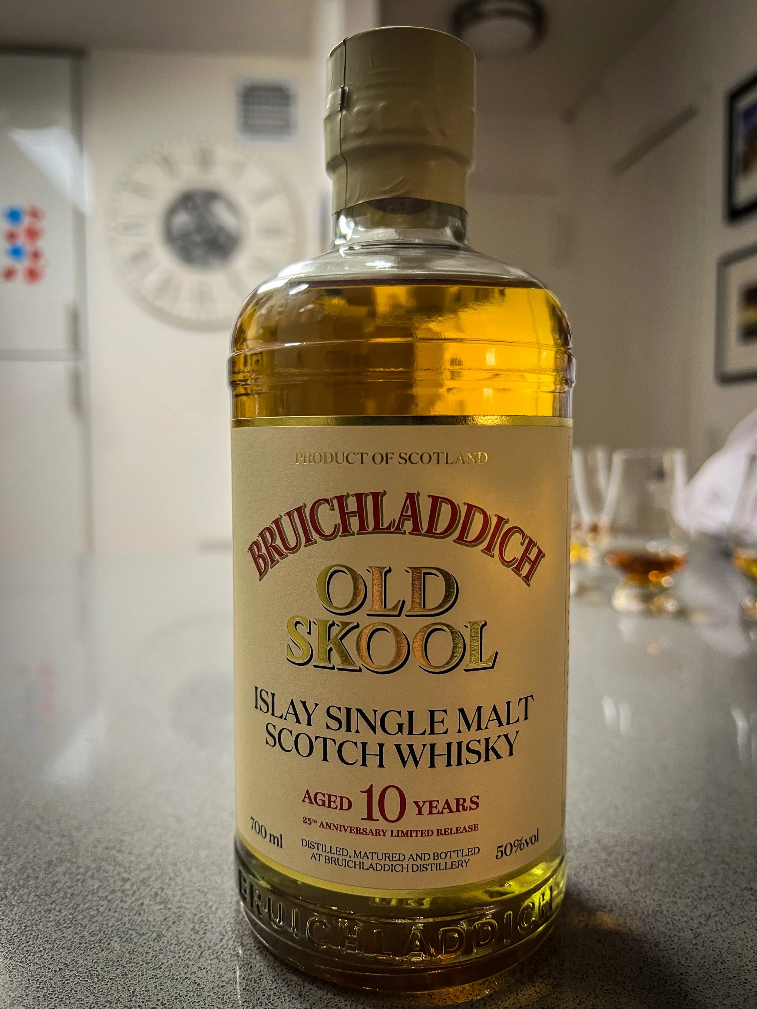 So when Bruichladdich announced its Old Skool 10 year old release was going to lean into the 1980s style as part of its celebration of its 25 years since re-opening in 2001, my eyes inevitably lit up.