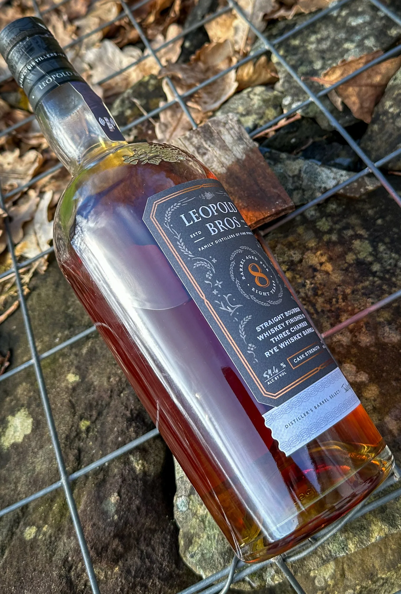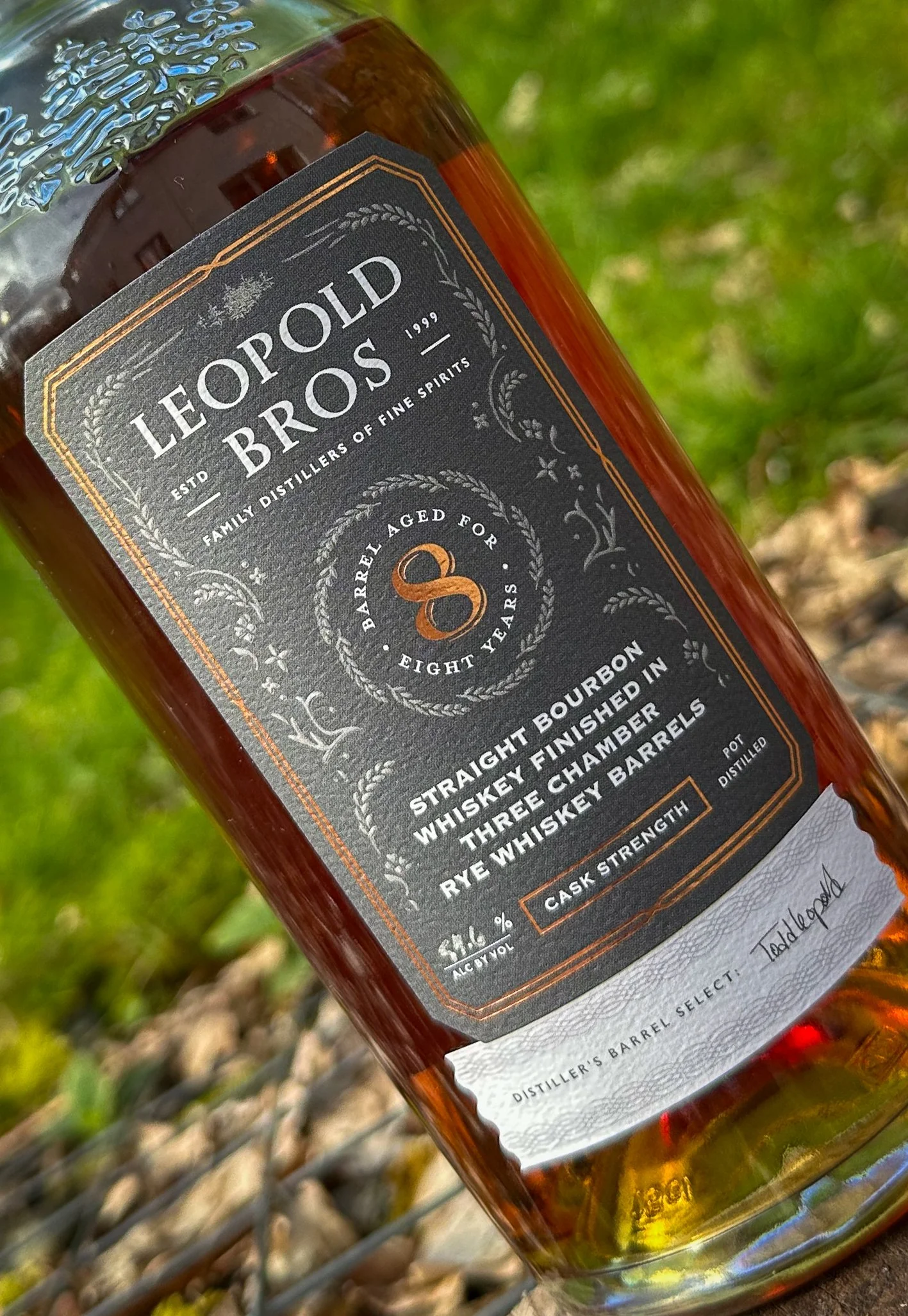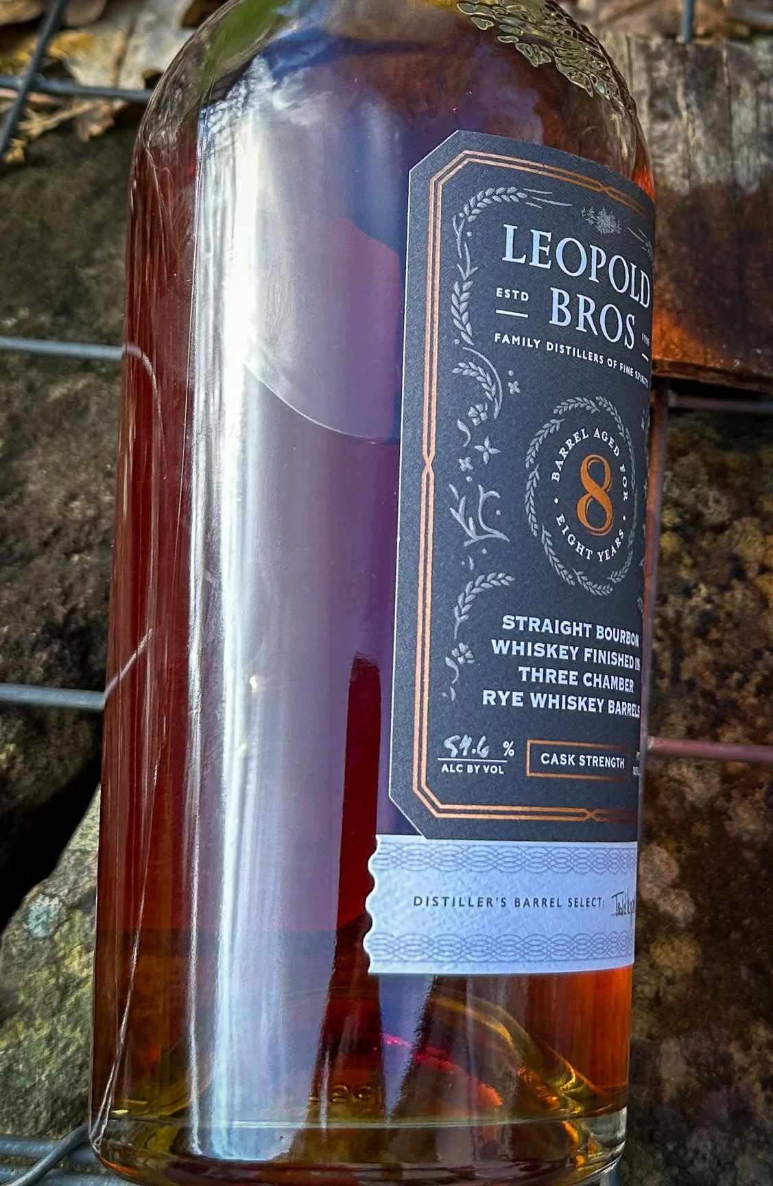 Leopold Bros 8yo, Kentucky Straight bourbon whiskey, “Distiller Barrels Select”, Mash Bill: 65% corn, 15% rye, with 20% Leopold Bros Floor Malt, 54.6% ABV