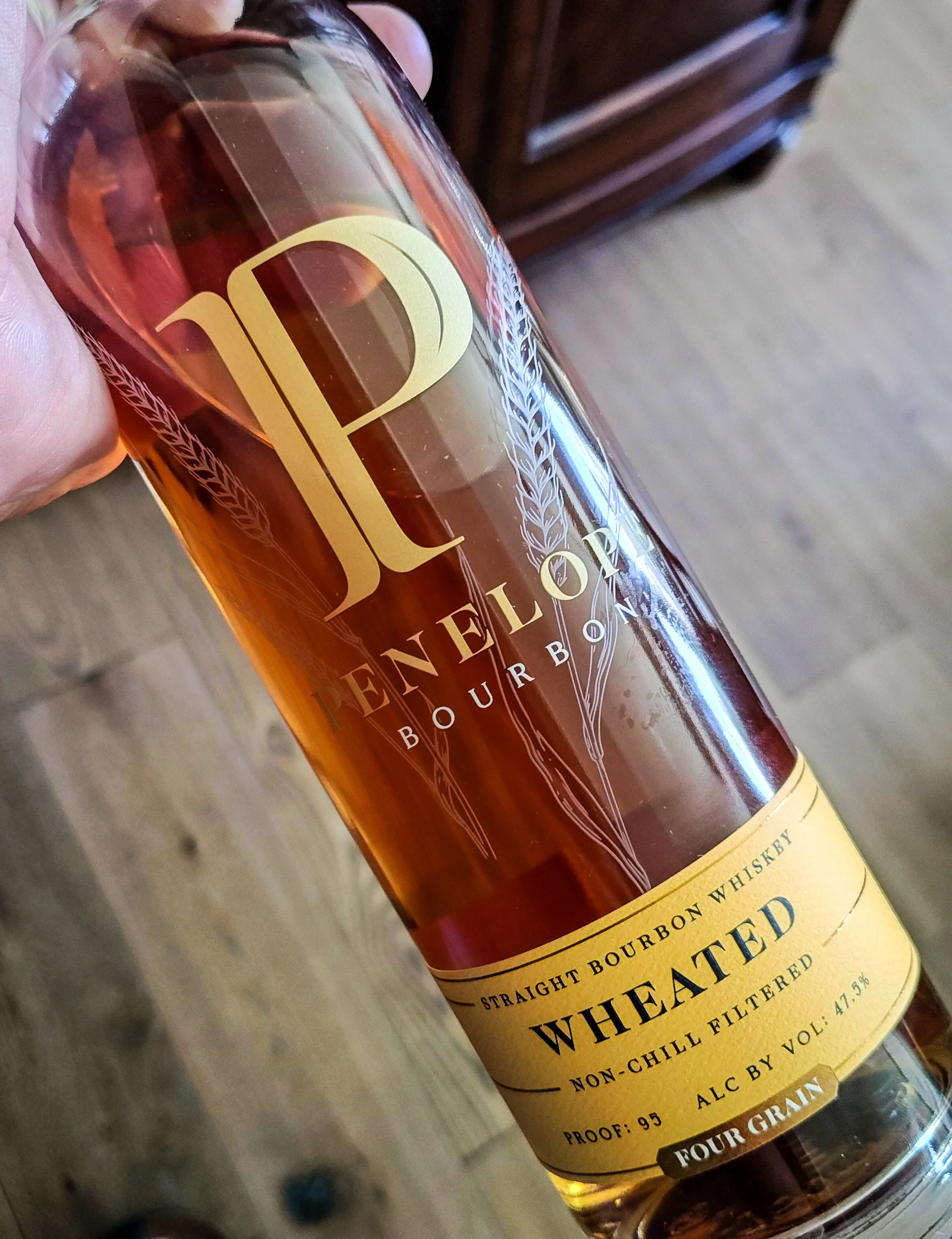 Penelope Wheated, Straight Bourbon Whiskey, 4-6 years old, mashbill: 74% corn, 16% wheat, 7% rye, and 3% malted barley, 47.5% ABV