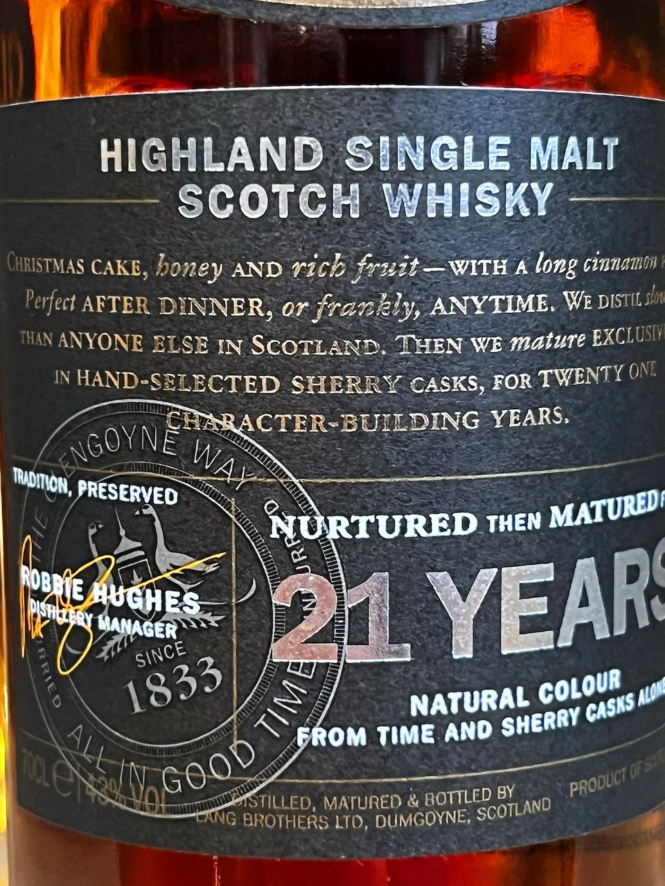 Glengoyne 21yo, official release, natural colour, 43% ABV