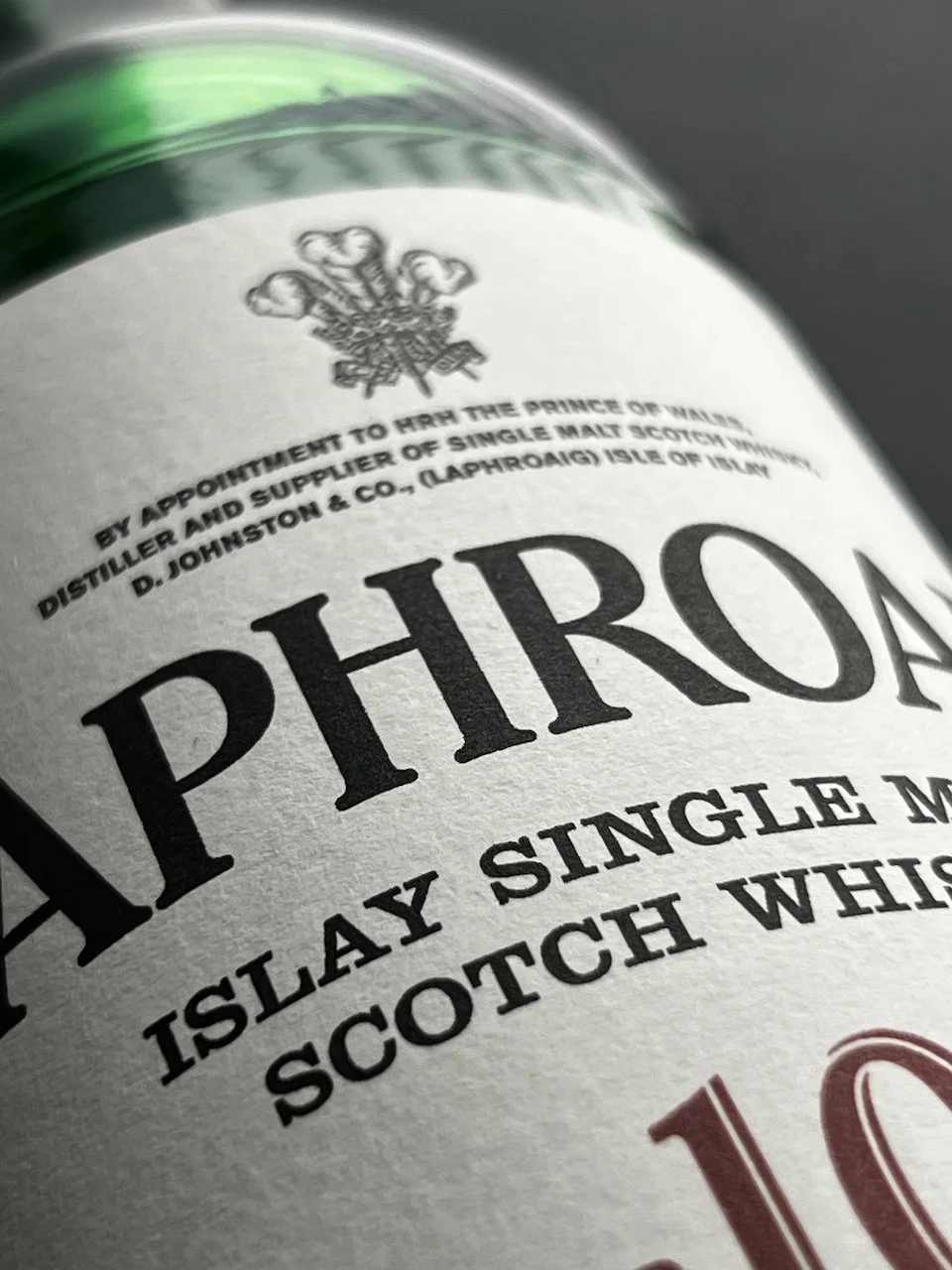A green glass whisky bottle with a white label, you know it’s Laphroaig – I even did image search to make sure it didn’t have any doppelgängers - and unless you’re a typography nerd like myself, there really is nothing visually flashy about it. I guess the bottle lets the liquid inside do the talking and boy has it got things to say.