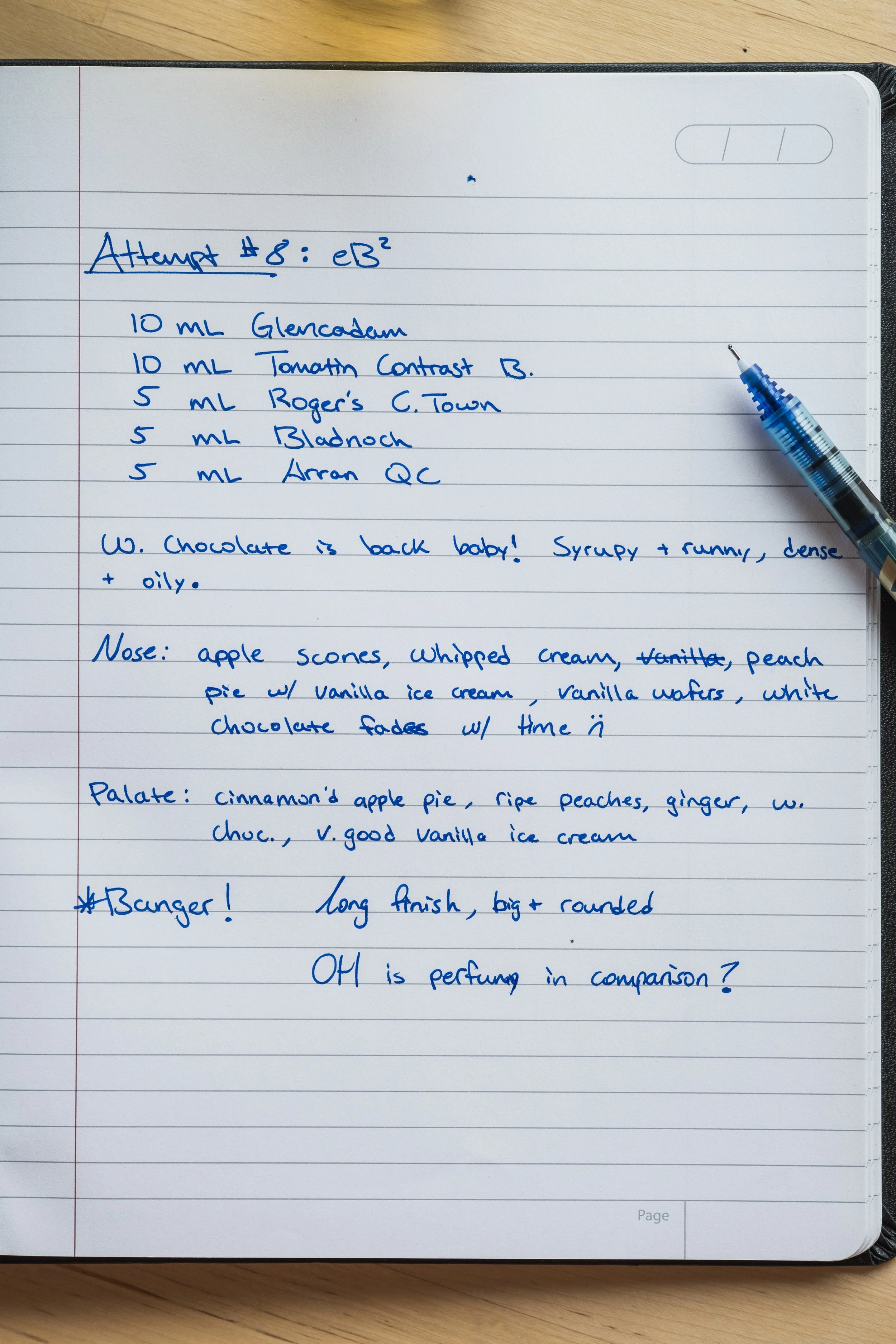 Given the extensive list of potential ingredients, I’ve needed to ration some based on their short-form notes and thoughts I’ve scribbled down. Not knowing the inner workings or methods used by blenders, I’m going to try and use my notes to guide me along.