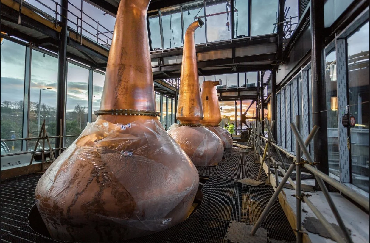Externally, the Rosebank distillery has made great progress in recent months and is set to be completed by late summer 2022. Its distinctive 108ft chimney is now complemented by a contemporary sloping, stepped roof.